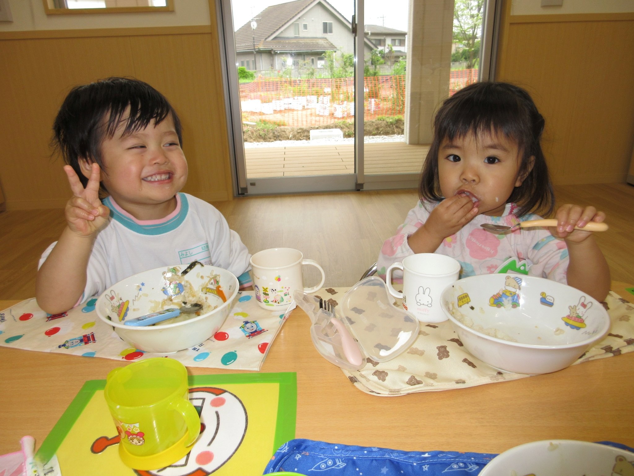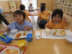 自園給食なので、専任の栄養士によって必要エネルギー、栄養素の確保が できるようメニュー内容を考えています。又、温かいものは温かく、冷たい ものは冷たくしての提供が可能です。