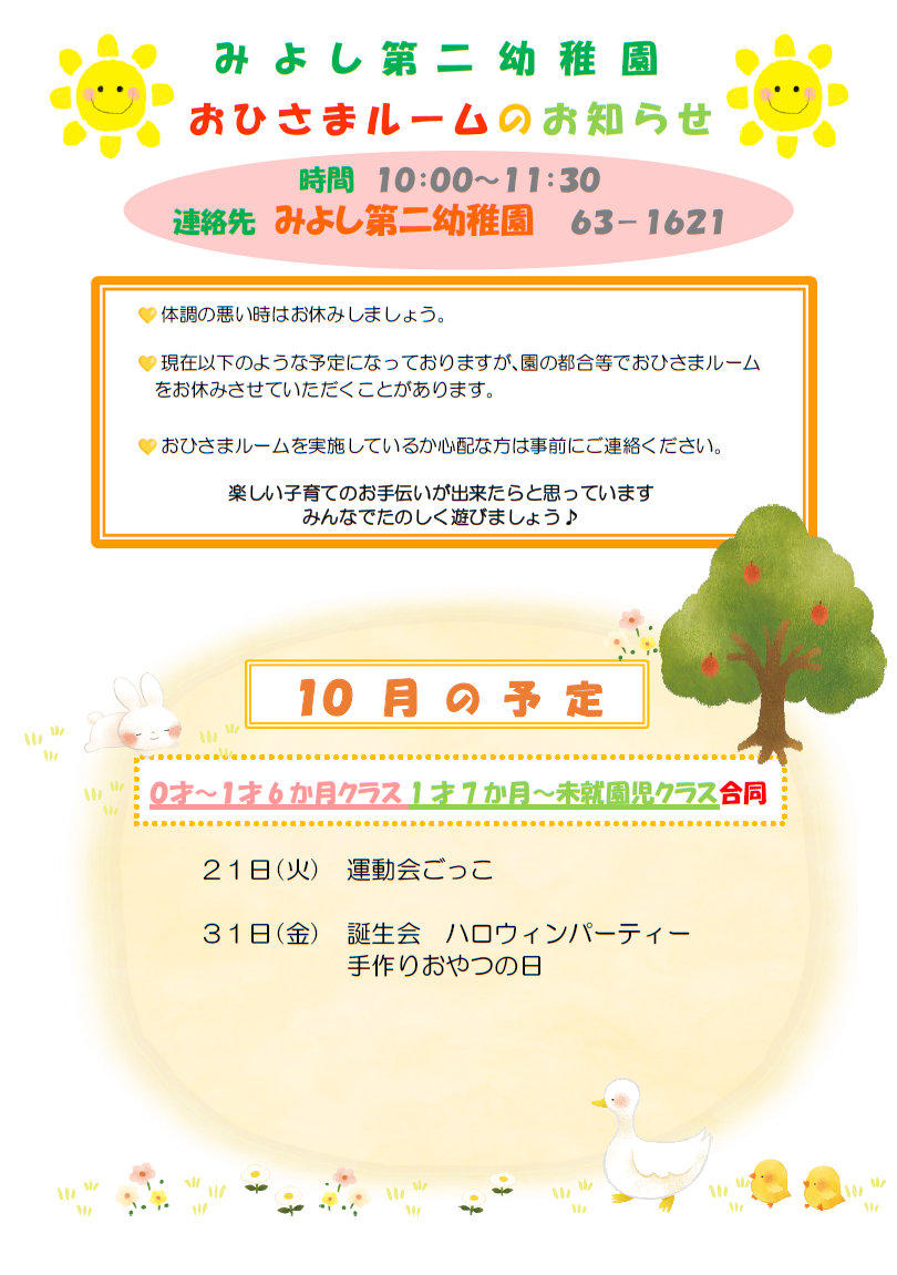 🐤10月のおひさまルームのおしらせ🐤(みよし幼稚園)